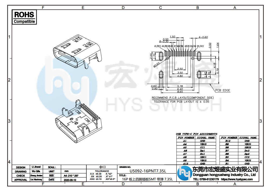 防水Type-C母座24Pin工艺、参数及材料介绍