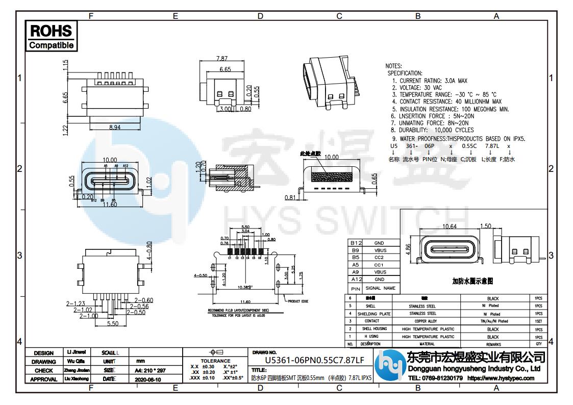 东莞宏煜盛实业专业防水Type-C连接器研发生产厂家。主要生产产品有:防水Type-C连接器、防水MICRO USB母座,防水USB TYPE-C母座 我司产品多为自主研发,均有申请专利。 产品防水等级经过第三方检测机构检测。了解更多咨讯可登录宏煜盛官网(https://www.hystypec.com)!